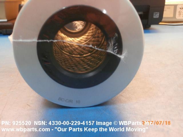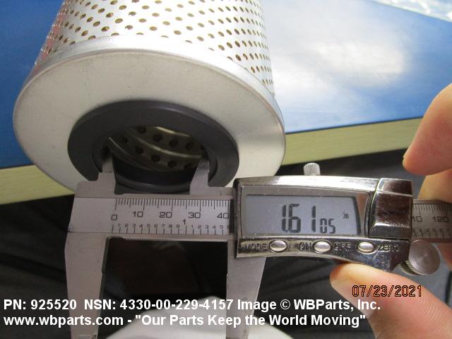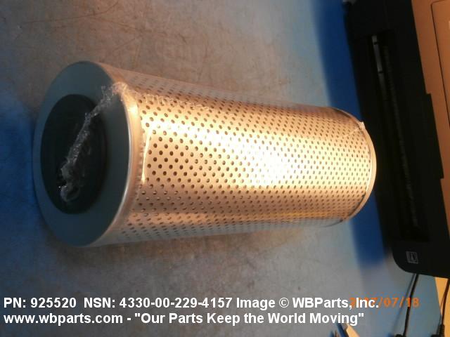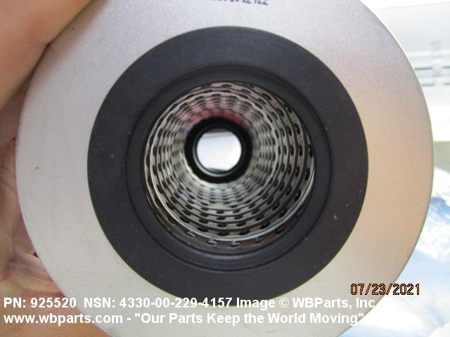 4330-00-229-4157 A replaceable device designed to remove solid particles from fluids ranging in density from heavy liquids to gases. The removal of particles is accomplished by porous material (metallic or non-metallic), stacked disks, wound wire, or the like, constructed so the fluid can flow through the device while the solid particles are retained. It may be designed to fit into a FILTER, FLUID (or similar cavity), or it may have an integral outer casing and mounting facilities and be designed to connect directly to an engine, compressor, or the like. The degree of removal of particles must be nominally rated at less than 50 microns or absolutely rated at less than 75 microns. Excludes FILTER ELEMENT, AIR CONDITIONING. See also STRAINER ELEMENT, SEDIMENT.20916500058Aircraft Hydraulic, Vacuum, and De-icing System Components29100042Engine Fuel System Components, Nonaircraft29150064Engine Fuel System Components, Aircraft and Missile Prime Movers29400064Engine Air and Oil Filters, Strainers, and Cleaners, Nonaircraft29450059Engine Air and Oil Filters, Cleaners, Aircraft Prime Moving43300057Centrifugals, Separators, and Pressure and Vacuum Filters5999000065300053Hospital Furniture, Equipment, Utensils, and Supplies66300029Chemical Analysis Instruments