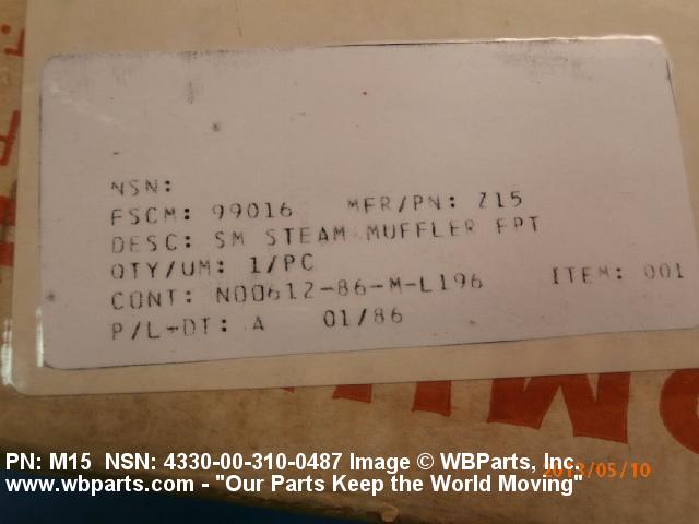 NSN 4330-00-310-0487 M1544AW58, M15-44AW58, 0111015
