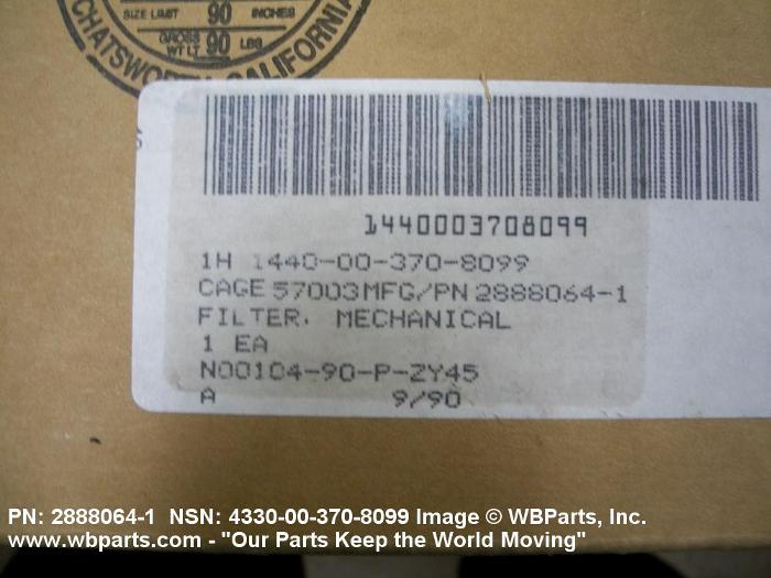 Part Alternates: 0611020927, 06-1102-0927 , 20011431, 2001-1431, 28880641, 2888064-1, 6-1102-0927, 4330-00-370-8099, 00-370-8099, 4330003708099, 003708099, 611020927