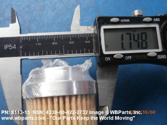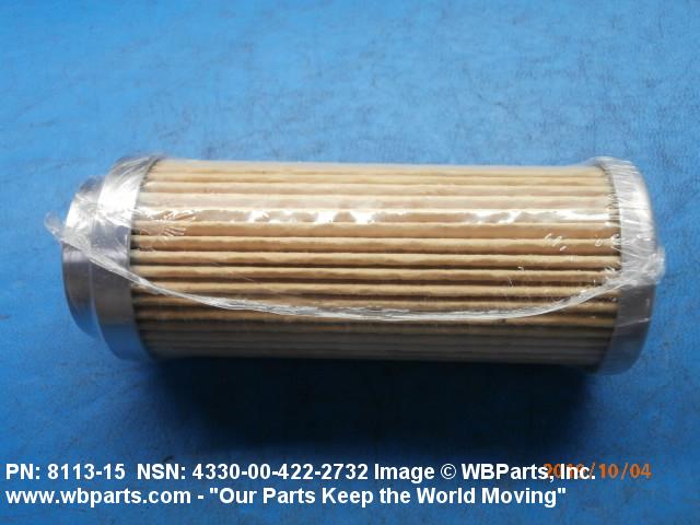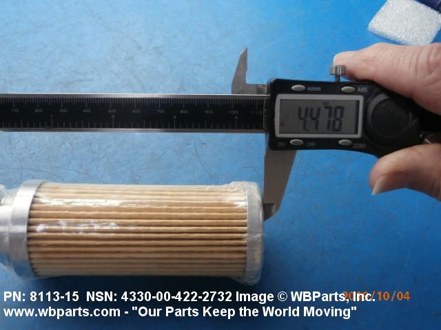 4330-00-422-2732 A replaceable device designed to remove solid particles from fluids ranging in density from heavy liquids to gases. The removal of particles is accomplished by porous material (metallic or non-metallic), stacked disks, wound wire, or the like, constructed so the fluid can flow through the device while the solid particles are retained. It may be designed to fit into a FILTER, FLUID (or similar cavity), or it may have an integral outer casing and mounting facilities and be designed to connect directly to an engine, compressor, or the like. The degree of removal of particles must be nominally rated at less than 50 microns or absolutely rated at less than 75 microns. Excludes FILTER ELEMENT, AIR CONDITIONING. See also STRAINER ELEMENT, SEDIMENT.20916500058Aircraft Hydraulic, Vacuum, and De-icing System Components29100042Engine Fuel System Components, Nonaircraft29150064Engine Fuel System Components, Aircraft and Missile Prime Movers29400064Engine Air and Oil Filters, Strainers, and Cleaners, Nonaircraft29450059Engine Air and Oil Filters, Cleaners, Aircraft Prime Moving43300057Centrifugals, Separators, and Pressure and Vacuum Filters5999000065300053Hospital Furniture, Equipment, Utensils, and Supplies66300029Chemical Analysis Instruments
