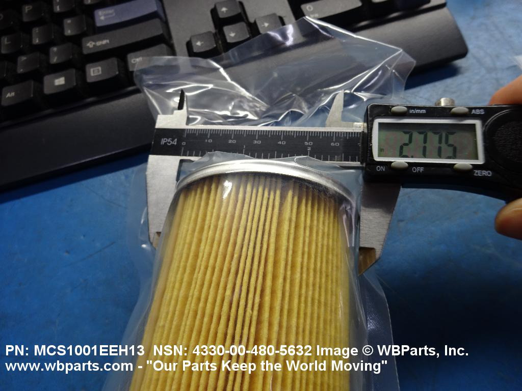 4330-00-480-5632 A replaceable device designed to remove solid particles from fluids ranging in density from heavy liquids to gases. The removal of particles is accomplished by porous material (metallic or non-metallic), stacked disks, wound wire, or the like, constructed so the fluid can flow through the device while the solid particles are retained. It may be designed to fit into a FILTER, FLUID (or similar cavity), or it may have an integral outer casing and mounting facilities and be designed to connect directly to an engine, compressor, or the like. The degree of removal of particles must be nominally rated at less than 50 microns or absolutely rated at less than 75 microns. Excludes FILTER ELEMENT, AIR CONDITIONING. See also STRAINER ELEMENT, SEDIMENT.20916500058Aircraft Hydraulic, Vacuum, and De-icing System Components29100042Engine Fuel System Components, Nonaircraft29150064Engine Fuel System Components, Aircraft and Missile Prime Movers29400064Engine Air and Oil Filters, Strainers, and Cleaners, Nonaircraft29450059Engine Air and Oil Filters, Cleaners, Aircraft Prime Moving43300057Centrifugals, Separators, and Pressure and Vacuum Filters5999000065300053Hospital Furniture, Equipment, Utensils, and Supplies66300029Chemical Analysis Instruments