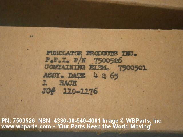 | 43 | 01 JAN 1963 | 00-540-4001 | 32624 ( FILTER ELEMENT, FLUID ) |