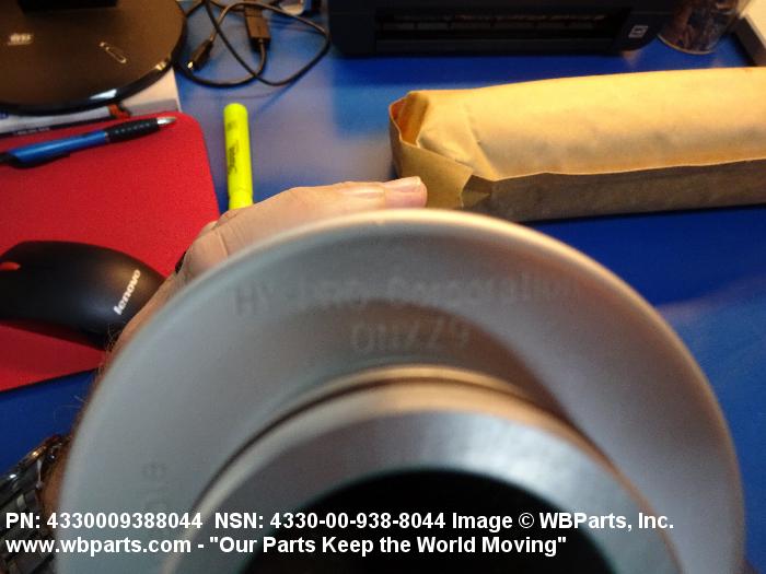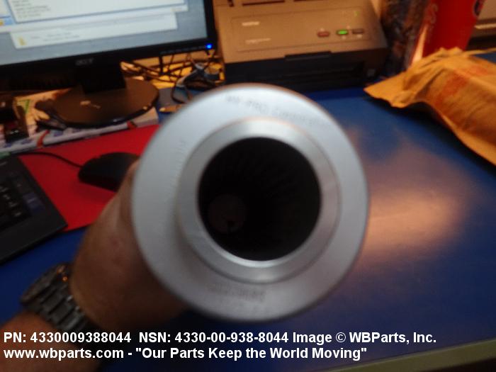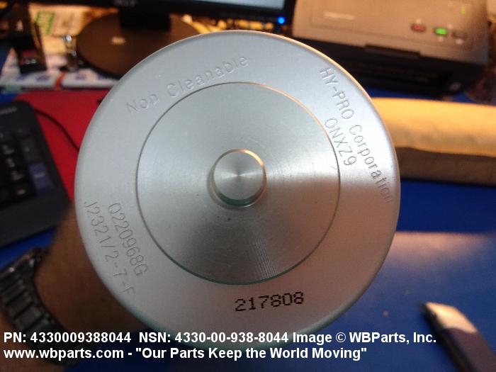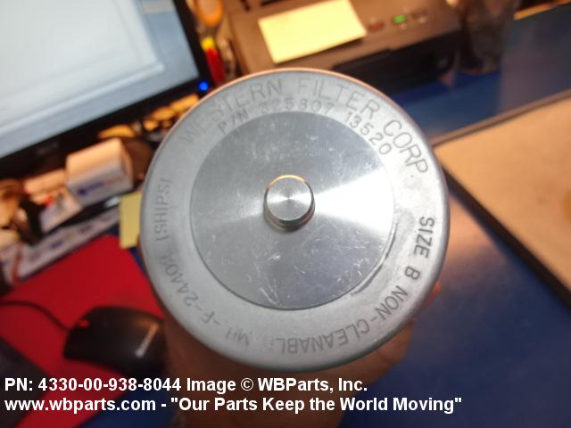 4330-00-938-8044 A replaceable device designed to remove solid particles from fluids ranging in density from heavy liquids to gases. The removal of particles is accomplished by porous material (metallic or non-metallic), stacked disks, wound wire, or the like, constructed so the fluid can flow through the device while the solid particles are retained. It may be designed to fit into a FILTER, FLUID (or similar cavity), or it may have an integral outer casing and mounting facilities and be designed to connect directly to an engine, compressor, or the like. The degree of removal of particles must be nominally rated at less than 50 microns or absolutely rated at less than 75 microns. Excludes FILTER ELEMENT, AIR CONDITIONING. See also STRAINER ELEMENT, SEDIMENT.20916500058Aircraft Hydraulic, Vacuum, and De-icing System Components29100042Engine Fuel System Components, Nonaircraft29150064Engine Fuel System Components, Aircraft and Missile Prime Movers29400064Engine Air and Oil Filters, Strainers, and Cleaners, Nonaircraft29450059Engine Air and Oil Filters, Cleaners, Aircraft Prime Moving43300057Centrifugals, Separators, and Pressure and Vacuum Filters5999000065300053Hospital Furniture, Equipment, Utensils, and Supplies66300029Chemical Analysis Instruments