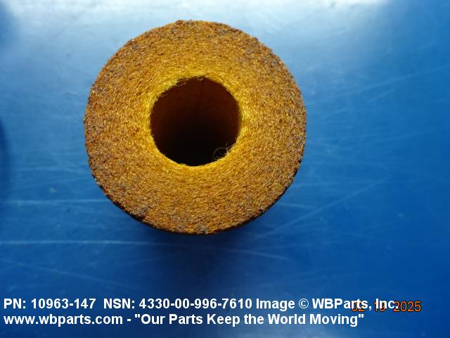 4330-00-996-7610 A replaceable device designed to remove solid particles from fluids ranging in density from heavy liquids to gases. The removal of particles is accomplished by porous material (metallic or non-metallic), stacked disks, wound wire, or the like, constructed so the fluid can flow through the device while the solid particles are retained. It may be designed to fit into a FILTER, FLUID (or similar cavity), or it may have an integral outer casing and mounting facilities and be designed to connect directly to an engine, compressor, or the like. The degree of removal of particles must be nominally rated at less than 50 microns or absolutely rated at less than 75 microns. Excludes FILTER ELEMENT, AIR CONDITIONING. See also STRAINER ELEMENT, SEDIMENT.20916500058Aircraft Hydraulic, Vacuum, and De-icing System Components29100042Engine Fuel System Components, Nonaircraft29150064Engine Fuel System Components, Aircraft and Missile Prime Movers29400064Engine Air and Oil Filters, Strainers, and Cleaners, Nonaircraft29450059Engine Air and Oil Filters, Cleaners, Aircraft Prime Moving43300057Centrifugals, Separators, and Pressure and Vacuum Filters5999000065300053Hospital Furniture, Equipment, Utensils, and Supplies66300029Chemical Analysis Instruments