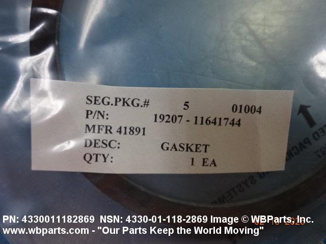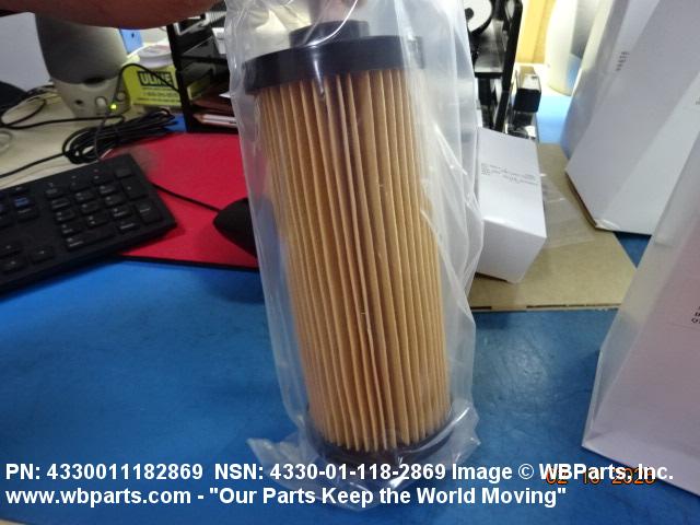 4330-01-118-2869 A parts kit used in servicing a FILTER, FLUID PRESSURE. It may contain such items as filter element(s), gasket(s), washer(s), preformed packing, bleeder valve(s), drain cock(s), and the like.