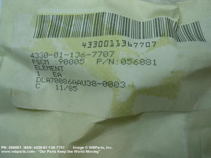 Part Alternates: 056881, 4330-01-136-7707, 01-136-7707, 4330011367707, 011367707