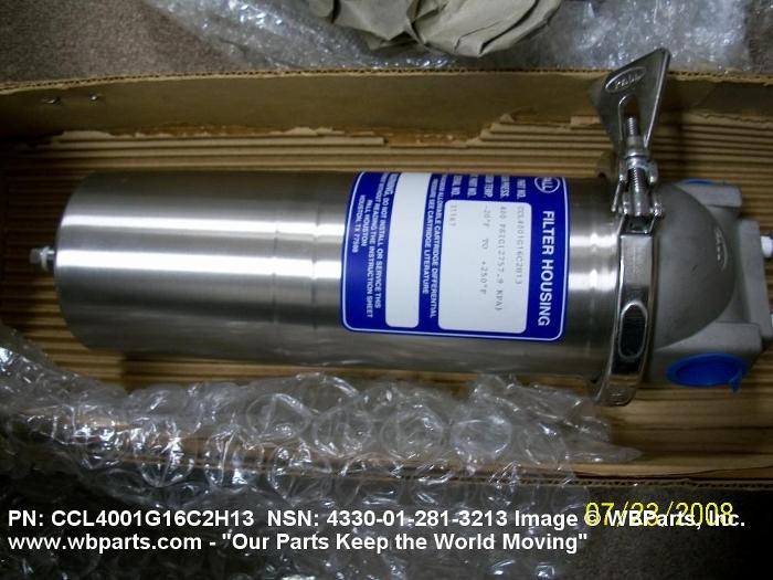4330-01-281-3213 A filter having inlet and outlet connections and designed to be connected in a pipe, tube or hose line. For spin-on, base-mounted filtering devices with integral outer casings, see FILTER ELEMENT, FLUID. Excludes AIR CONDITIONER.21516500058Aircraft Hydraulic, Vacuum, and De-icing System Components16600062Aircraft Air Conditioning, Heating, and Pressurizing Equipment25300060Vehicular Brake, Steering, Axle, Wheel, and Track Components29100042Engine Fuel System Components, Nonaircraft29150064Engine Fuel System Components, Aircraft and Missile Prime Movers29400064Engine Air and Oil Filters, Strainers, and Cleaners, Nonaircraft29450059Engine Air and Oil Filters, Cleaners, Aircraft Prime Moving41300045Refrigeration and Air Conditioning Components43300057Centrifugals, Separators, and Pressure and Vacuum Filters4930000063500059Miscellaneous Alarm, Signal, and Security Detection Systems65150057Medical and Surgical Instruments, Equipment, and Supplies65300053Hospital Furniture, Equipment, Utensils, and Supplies65400047Ophthalmic Instruments, Equipment, and Supplies66300029Chemical Analysis Instruments