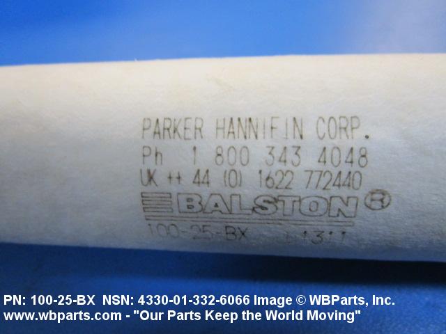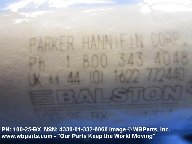 | 100-25-BX | 58485 | PARKER-HANNIFIN CORPORATION FILTRATION AND SEPARATION DIVISION |