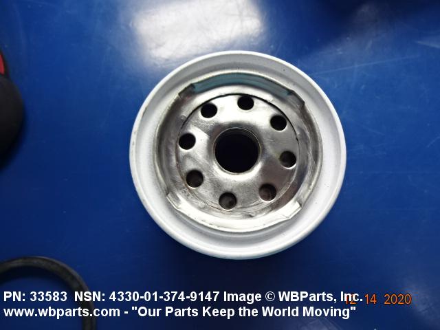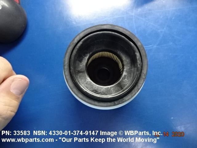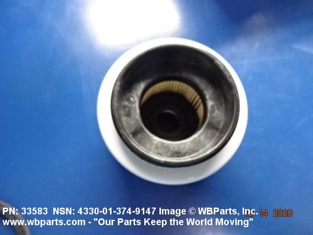 4330-01-374-9147 A replaceable device designed to remove solid particles from fluids ranging in density from heavy liquids to gases. The removal of particles is accomplished by porous material (metallic or non-metallic), stacked disks, wound wire, or the like, constructed so the fluid can flow through the device while the solid particles are retained. It may be designed to fit into a FILTER, FLUID (or similar cavity), or it may have an integral outer casing and mounting facilities and be designed to connect directly to an engine, compressor, or the like. The degree of removal of particles must be nominally rated at less than 50 microns or absolutely rated at less than 75 microns. Excludes FILTER ELEMENT, AIR CONDITIONING. See also STRAINER ELEMENT, SEDIMENT.20916500058Aircraft Hydraulic, Vacuum, and De-icing System Components29100042Engine Fuel System Components, Nonaircraft29150064Engine Fuel System Components, Aircraft and Missile Prime Movers29400064Engine Air and Oil Filters, Strainers, and Cleaners, Nonaircraft29450059Engine Air and Oil Filters, Cleaners, Aircraft Prime Moving43300057Centrifugals, Separators, and Pressure and Vacuum Filters5999000065300053Hospital Furniture, Equipment, Utensils, and Supplies66300029Chemical Analysis Instruments