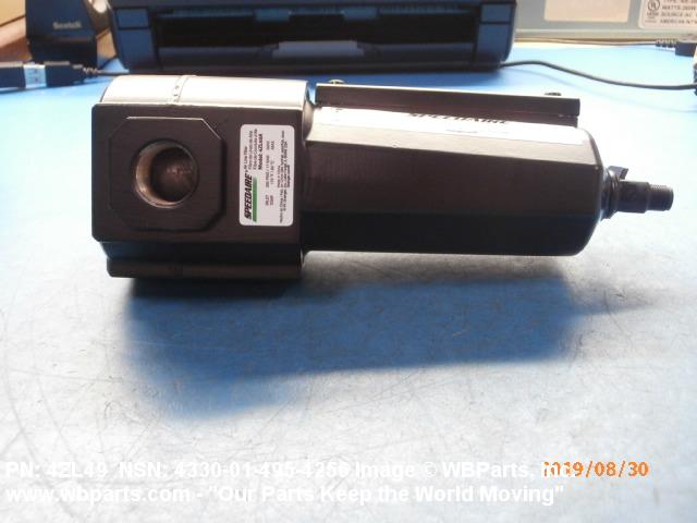 4330-01-495-4256 A filter having inlet and outlet connections and designed to be connected in a pipe, tube or hose line. For spin-on, base-mounted filtering devices with integral outer casings, see FILTER ELEMENT, FLUID. Excludes AIR CONDITIONER.21516500058Aircraft Hydraulic, Vacuum, and De-icing System Components16600062Aircraft Air Conditioning, Heating, and Pressurizing Equipment25300060Vehicular Brake, Steering, Axle, Wheel, and Track Components29100042Engine Fuel System Components, Nonaircraft29150064Engine Fuel System Components, Aircraft and Missile Prime Movers29400064Engine Air and Oil Filters, Strainers, and Cleaners, Nonaircraft29450059Engine Air and Oil Filters, Cleaners, Aircraft Prime Moving41300045Refrigeration and Air Conditioning Components43300057Centrifugals, Separators, and Pressure and Vacuum Filters4930000063500059Miscellaneous Alarm, Signal, and Security Detection Systems65150057Medical and Surgical Instruments, Equipment, and Supplies65300053Hospital Furniture, Equipment, Utensils, and Supplies65400047Ophthalmic Instruments, Equipment, and Supplies66300029Chemical Analysis Instruments