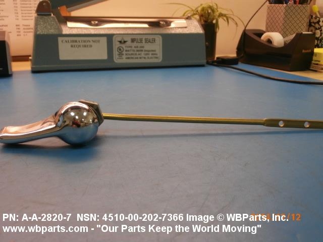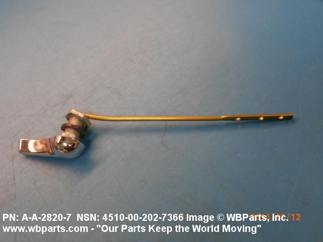 4510-00-202-7366 A manually operated device consisting of an arm and lever handle which, when connected to a low style water closet tank, activates a series of lift wires which raises the flush valve ball allowing the water to pass into the closet bowl.