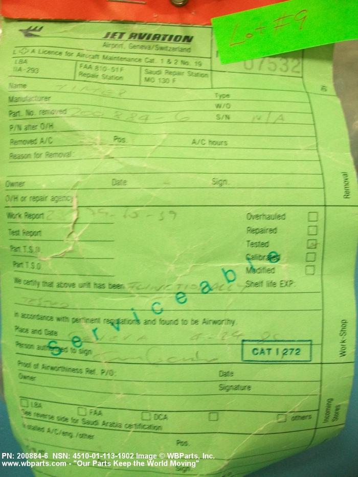 Part Alternates: 2008846, 200884-6, 4510-01-113-1902, 01-113-1902, 4510011131902, 011131902