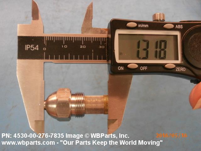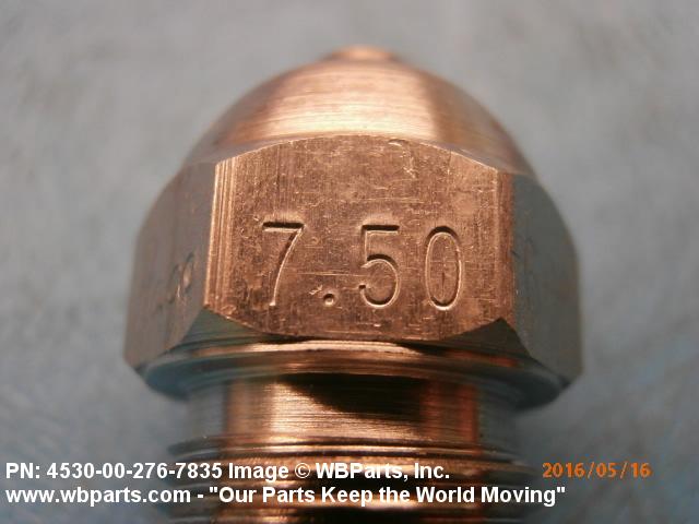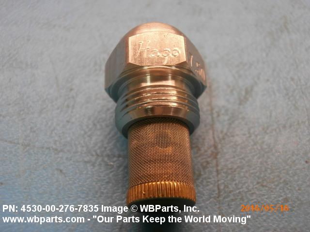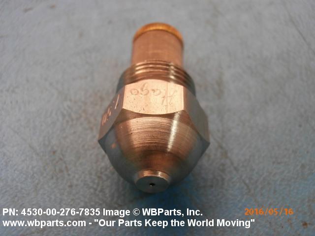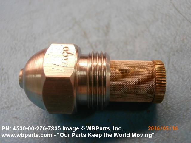 4530-00-276-7835 An essentially tubular fitting which forms the combustion outlet end of the fuel feed line in a pressure oil burner. It has a single, threaded oil inlet connection at one end and a nonconnected outlet at the other through which the oil is released in the boiler combustion chamber in the form of a spray. Outlet tip may be separable. May include strainer, filter, and/or adapter.