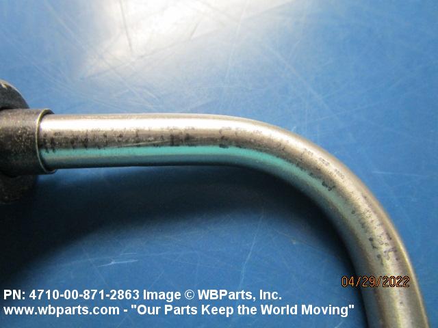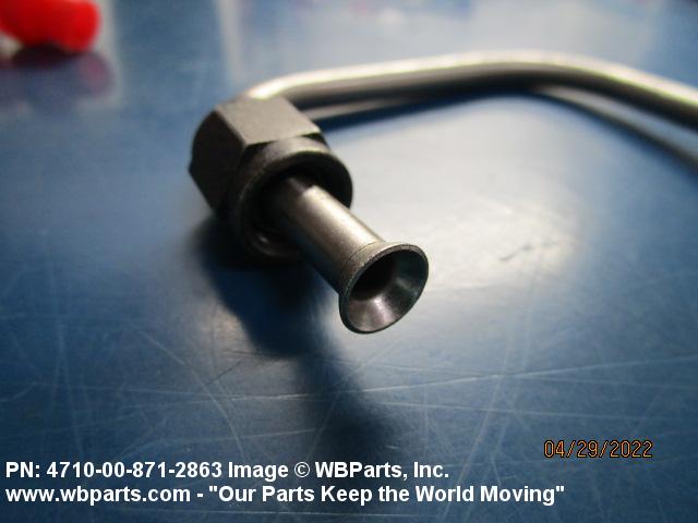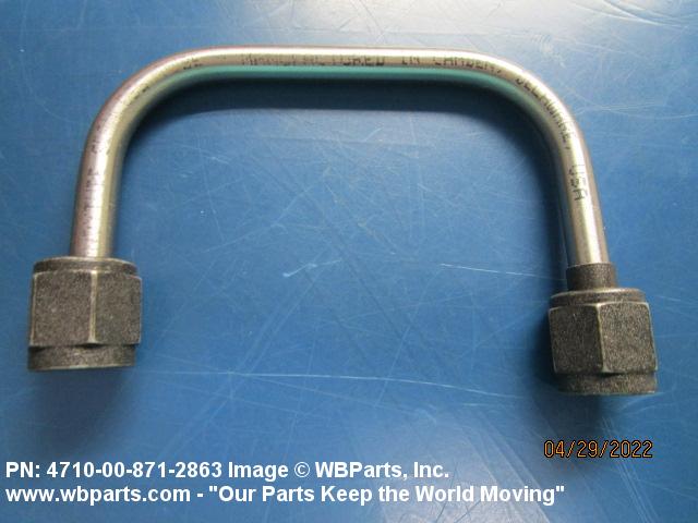 4710-00-871-2863 A length of tubing, straight, or prebent to a predetermined angle, with added component(s) that forms an end connection on one or both ends. For flexible tube assemblies, see HOSE ASSEMBLY (as modified). For items having perforations in the tubing or attachments, see TUBE ASSEMBLY, FIRE EXTINGUISHING SYSTEM. Excludes items having integral preformed or plain ends, TUBE, BENT (as modified), and items which are branched or forked.