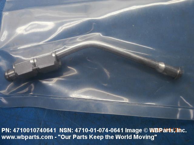 4710-01-074-0641 A length of tubing, straight, or prebent to a predetermined angle, with added component(s) that forms an end connection on one or both ends. For flexible tube assemblies, see HOSE ASSEMBLY (as modified). For items having perforations in the tubing or attachments, see TUBE ASSEMBLY, FIRE EXTINGUISHING SYSTEM. Excludes items having integral preformed or plain ends, TUBE, BENT (as modified), and items which are branched or forked.