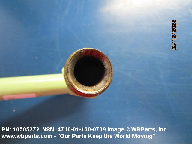 4710-01-160-0739 A length of tubing, straight, or prebent to a predetermined angle, with added component(s) that forms an end connection on one or both ends. For flexible tube assemblies, see HOSE ASSEMBLY (as modified). For items having perforations in the tubing or attachments, see TUBE ASSEMBLY, FIRE EXTINGUISHING SYSTEM. Excludes items having integral preformed or plain ends, TUBE, BENT (as modified), and items which are branched or forked.