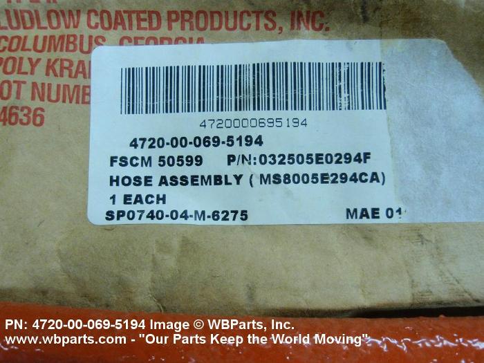 NSN 4720-00-069-5194 MS8005E294CA, AE6665002E0294, S915B0294CF