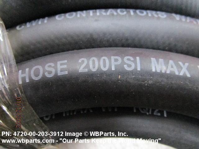 4720-00-203-3912 A length of nonmetallic hose with fittings on one or both ends. For items without fittings, see HOSE, NONMETALLIC. Excludes HOSE ASSEMBLY, AIR DUCT; and HOSE ASSEMBLY, AIR DUCT, AIR BREATHING.20242100023Fire Fighting Equipment47200024Hose and Flexible Tubing