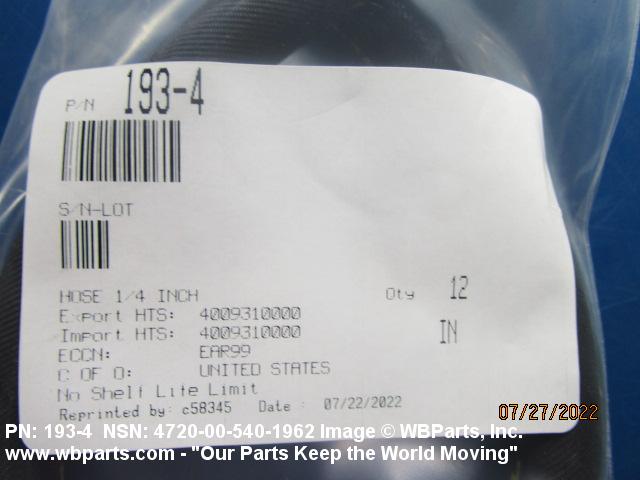 4720-00-540-1962 A flexible, tubular item having a nonmetallic tube inner conveying surface and one or more reinforcement layers of a metallic or nonmetallic material. It is designed to convey gasses, liquids, or solids. For items with fittings on one or both ends, see HOSE ASSEMBLY, NONMETALLIC. Excludes HOSE, AIR DUCT; and HOSE AIR DUCT, AIR BREATHING.20242100023Fire Fighting Equipment47200024Hose and Flexible Tubing