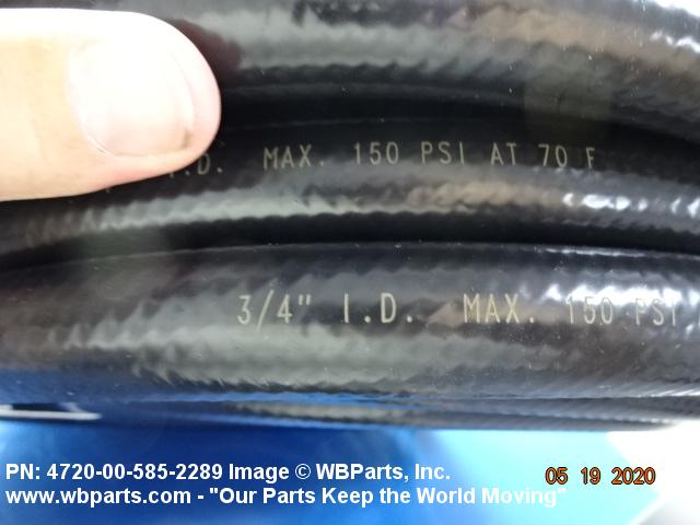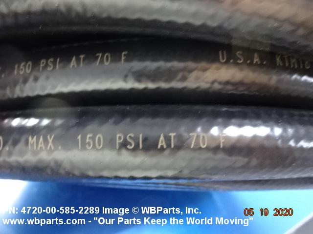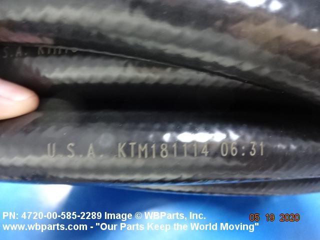 4720-00-585-2289 A length of nonmetallic hose with fittings on one or both ends. For items without fittings, see HOSE, NONMETALLIC. Excludes HOSE ASSEMBLY, AIR DUCT; and HOSE ASSEMBLY, AIR DUCT, AIR BREATHING.20242100023Fire Fighting Equipment47200024Hose and Flexible Tubing
