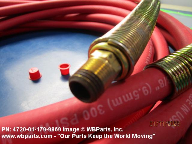 4720-01-179-9869 A length of nonmetallic hose with fittings on one or both ends. For items without fittings, see HOSE, NONMETALLIC. Excludes HOSE ASSEMBLY, AIR DUCT; and HOSE ASSEMBLY, AIR DUCT, AIR BREATHING.20242100023Fire Fighting Equipment47200024Hose and Flexible Tubing