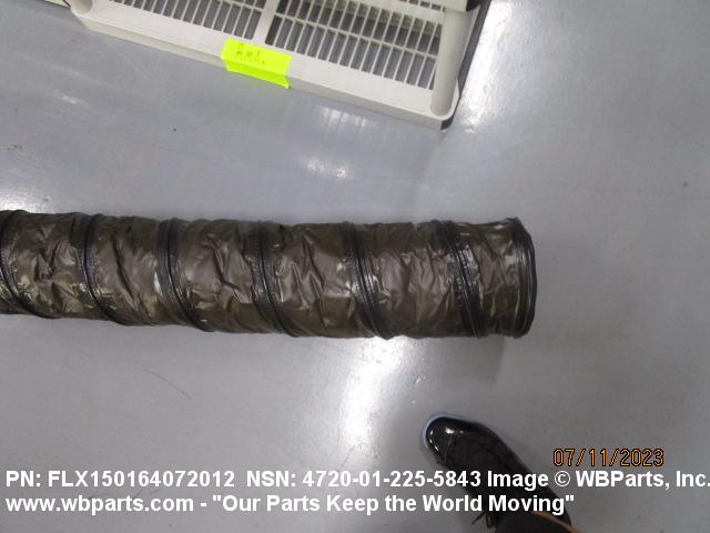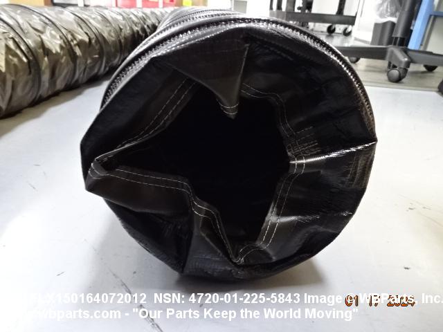 4720-01-225-5843 A flexible, tubular item of light wall construction. It must have single or multiple layers of nonmetallic material, but may contain metal wire reinforcement, foil type liner, and/or woven or braided cover. It is designed to convey under low pressure gaseous material, such as air and fumes, and light weight solid materials, such as dust, powders, and fibers. For items with couplings, see HOSE ASSEMBLY, AIR DUCT. For items of sleeve section design rated for high pressure use, see SLEEVE, SEAL, COUPLING. Excludes hose, nonmetallic.