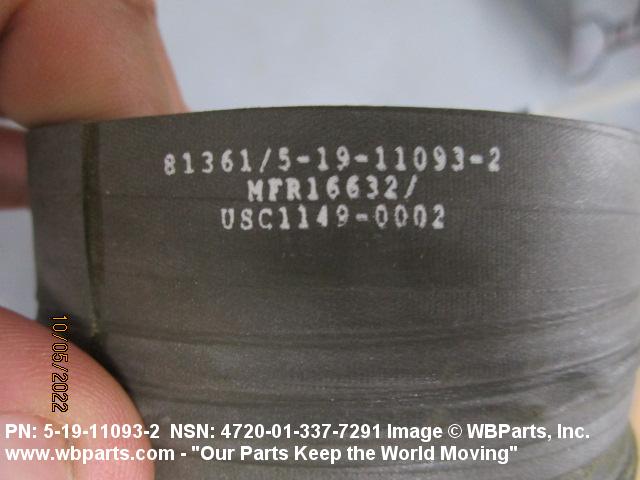NSN 4720-01-337-7291 51911093, 5-19-11093, 5-19-11093-2