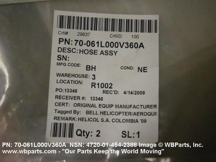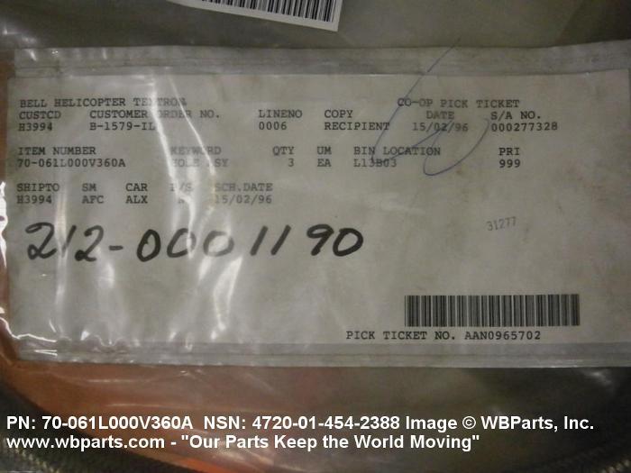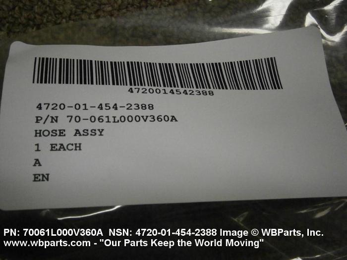 Part Alternates: 70061L000V360A, 70-061L000V360A, 4720-01-454-2388, 01-454-2388, 4720014542388, 014542388