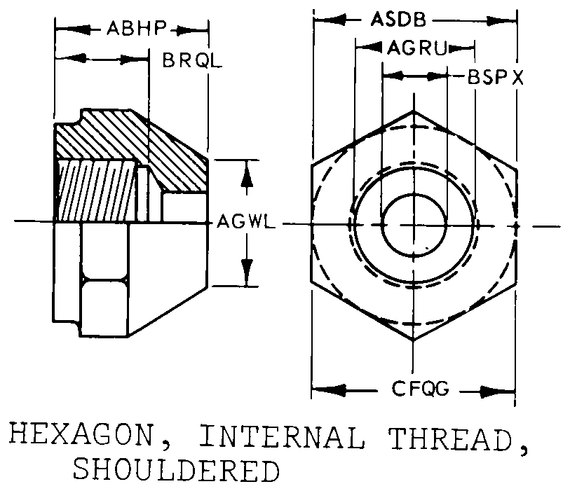 | STYLE DESIGNATOR | C23 HEXAGON, INTERNAL THREAD, SHOULDERED |