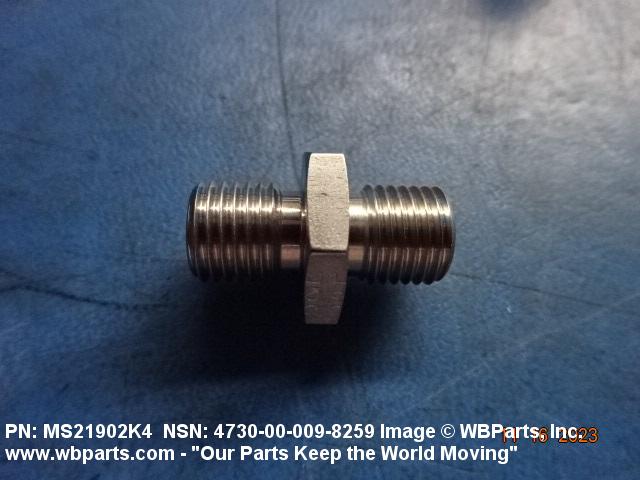 4730-00-009-8259 A straight, one-piece fitting used to join two bosses or boss fittings. Both ends are the same size and have external machine threads (straignt threads other than pipe or hose series). It is designed to facilitate a gasket, preformed packing, washer, or the like to form a seal at the boss. The center section may be suitably shaped to accommodate a wrench.