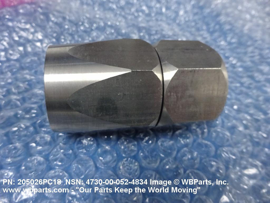 4730-00-052-4834 An adapter having machine threads (straight threads other than pipe or hose series) designed to accommodate a tube on one end or an unthreaded end designed to accommodate a tube. The other end has standard hose threads, an incomplete part of a threaded end connection that grips the hose directly, or is unthreaded and designed to accommodate a hose. It is designed to join a tube or tube fitting to a hose or hose fitting.