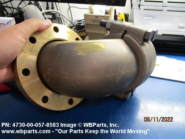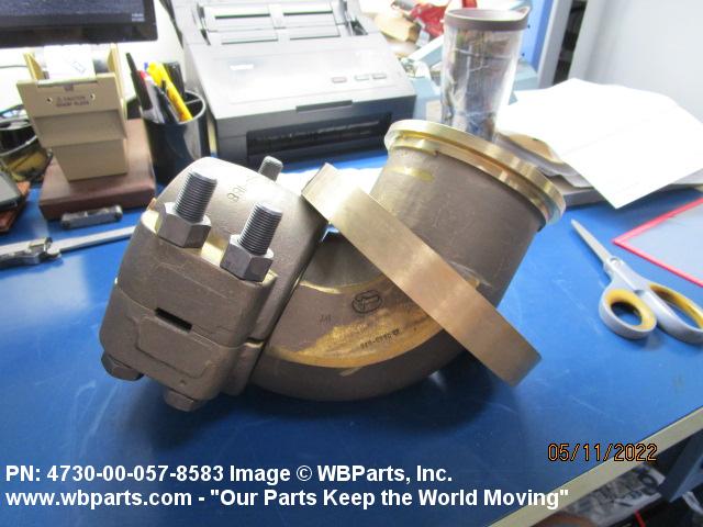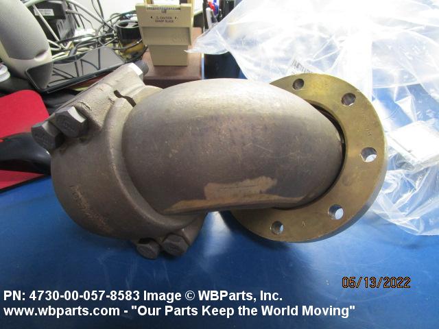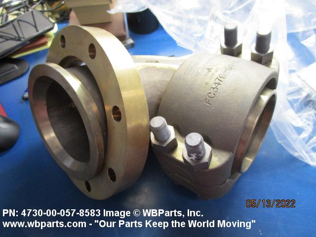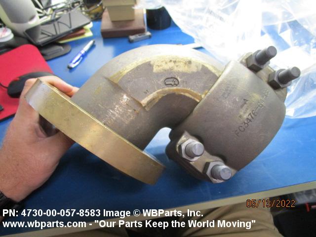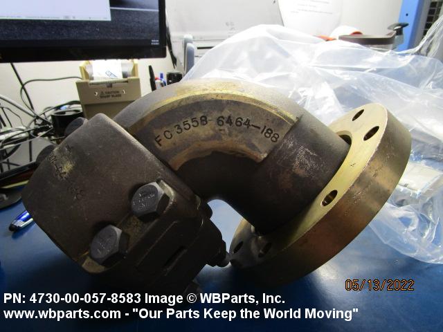 4730-00-057-8583 A fitting that forms an angle of less than 180 degrees (3.141 radians) from the straight flow. One end connection must have a swivel flange designed to permit axial rotation of the fitting, usually for the ease of installation, prior to securing it to a flange or mounting pad. The other end connection is designed to grip the hose directly, either externally, internally, or both. It includes items designed to accommodate a swivel flange.