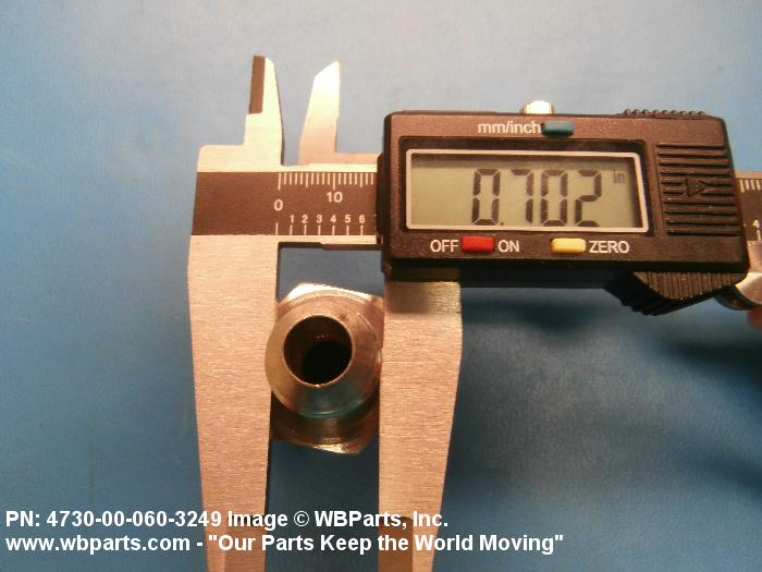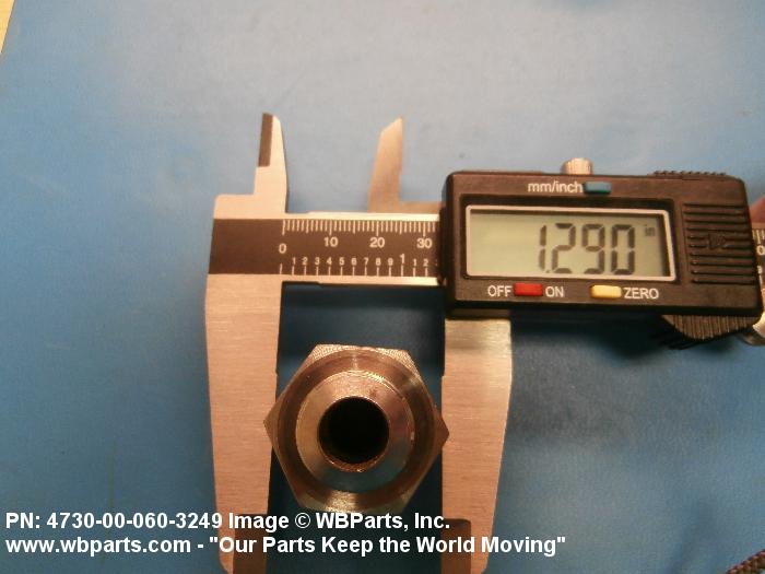 4730-00-060-3249 An adapter having machine threads (straight threads other than pipe or hose series) designed to accommodate a tube on one end or an unthreaded end designed to accommodate a tube. The other end has external or internal machine threads (straight threads other than pipe or hose series) and is designed to facilitate a gasket, preformed packing, washer, or the like to form a seal at the boss. It is designed to join a tube or tube fitting to a boss or boss fitting in a straight line on items such as tanks, housings, valve fittings, and the like. See also COUPLING, TUBE and NIPPLE, TUBE.