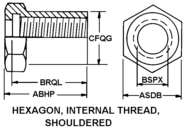 | STYLE DESIGNATOR | C2 HEXAGON, INTERNAL THREAD, SHOULDERED |