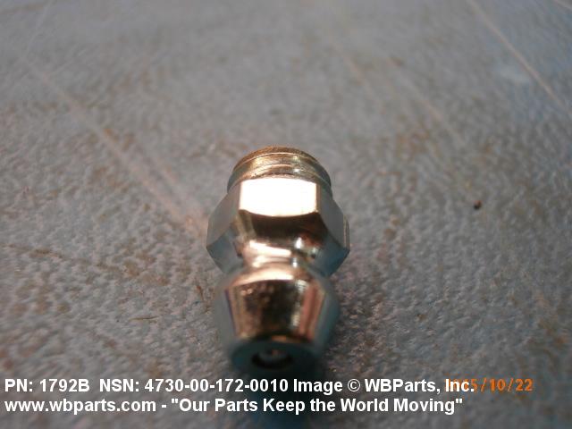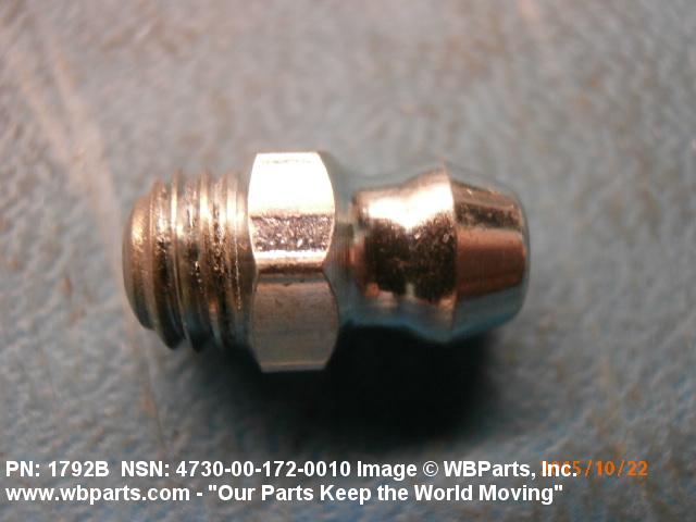 4730-00-172-0010 A specifically designed item pressed or threaded into a lubrication passage, for the purpose of adapting a related coupler and/or grease gun, to dispense grease to a bearing, shaft and similar items.