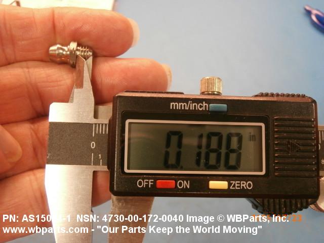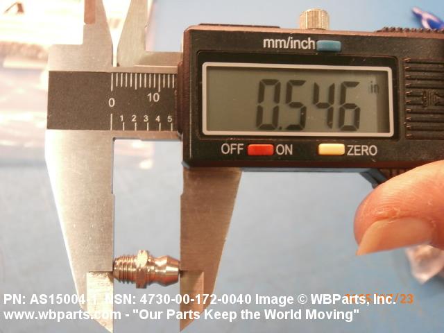 Part Alternates: MS150041, MS15004-1, MLS150041, MLS15004-1, A566/325, A566325, AS15004, AS150041, AS15004-1, AS35411, H5472002130, H547-2002-130, SSN6377002159, SSN637-700-2159, WS-9042 PIECE 63, WS9042PIECE63, WS927363, WS-9273-63, MILF3541, MIL-F-3541, MILF-3541 TY4 STR, MILF3541TY4STR, 5182143686, 518-2143686, 518214368626, 518-2143686-26, 566A004958, 581-6726888 FIND 20, 5816726888FIND20, 701-7070554 SH 1 PC 2, 7017070554SH1PC2, 77623-09X3 PIEC, 7762309X3PIEC, 77625-03X2 PIEC, 7762503X2PIEC, 122-3817720 PC 13, 1223817720PC13, 122-6776279 PC 46, 1226776279PC46, 122-6818783 PC 23, 1226818783PC23, 122-7312139 PC 13, 1227312139PC13, 1454510954M4, 145-4510954M4, 167-7066804-130, 1966, 1966ALEMITE, 1966B, 1966S, 2014-42 PIECE 2, 201442PIECE2, 201483PC72, 2014-83PC72, 2127596, 216042 , 216042 ITEM 9 , 216042ITEM9, 217819, 21824836101, 218-24836-101, 2409159032PC22, 2409-159032PC22 , 2463132PCM3, 2463-132PCM3 , 3202121, 32-02121, 45F4515, 45F451-5, 4730-00-172-0040, 00-172-0040, 4730001720040, 1677066804130, 211009513, 001720040