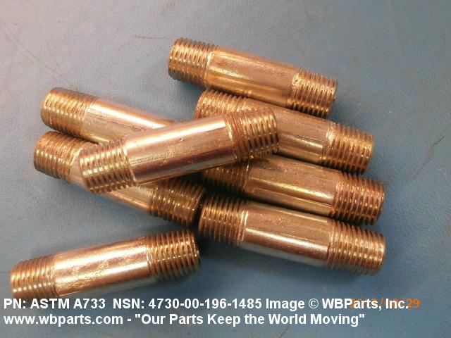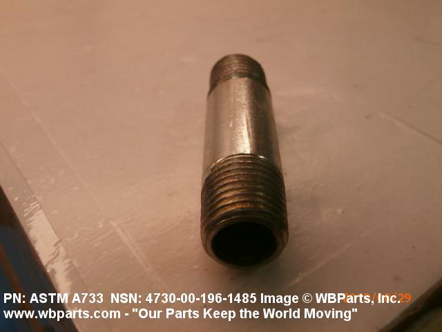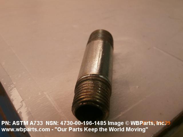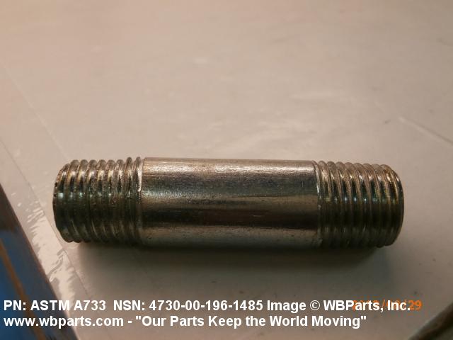 4730-00-188-1896 A straight one-piece metallic pipe 12 inches(304 MM)or less in length having external threads of the same size on both ends. It may have a center section which is externally shaped to accommodate a wrench. For pipe having internal threads 12 inches(304 MM)or less in length see coupling,pipe. For pipe in excess of 12 inches(304 MM)see pipe as modified.