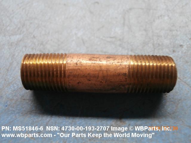 4730-00-193-2707 A straight one-piece metallic pipe 12 inches(304 MM)or less in length having external threads of the same size on both ends. It may have a center section which is externally shaped to accommodate a wrench. For pipe having internal threads 12 inches(304 MM)or less in length see coupling,pipe. For pipe in excess of 12 inches(304 MM)see pipe as modified.
