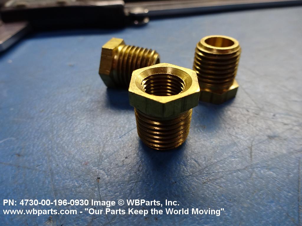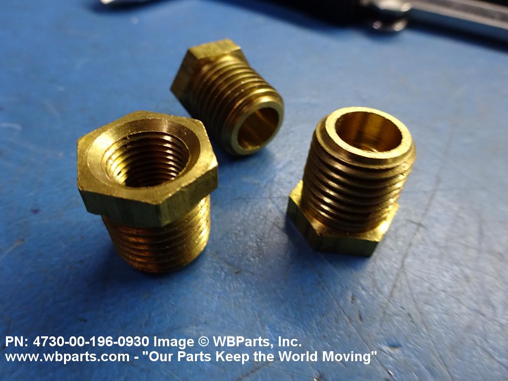 4730-00-196-0930 A fitting with pipe threads having a female connection inside of a male connection, used in conjunction with another fitting, to connect in the same line, two pipes of different sizes.