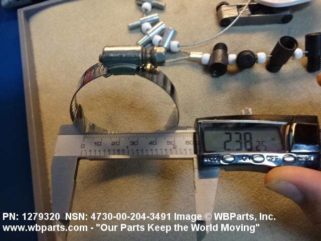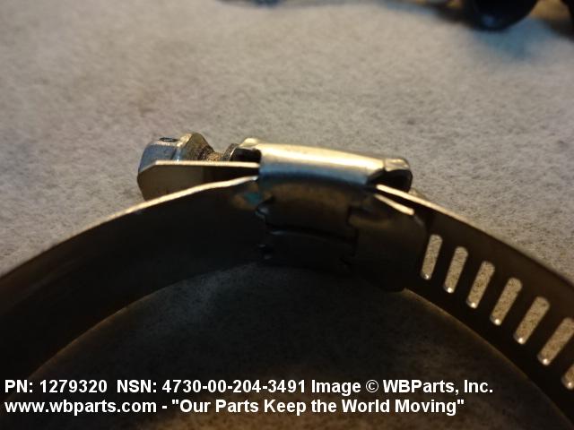 4730-00-204-3491 A clamp in which the body (band or wire) completely encircles an item and distributes a relatively even amount of pressure throughout the entire 360 degrees (6.282 radians) of the periphery of the item to be compressed. Its compression quality is dependent upon an integral screw mechanism, (screw, bolt spring compression and the like mechanical fasteners), or it may be applied by a device not integral with the clamp itself. It is specifically designed to prevent leakage between a hose and its attaching connection(s) when the body of the clamp is round or circular. For square, rectangular, or irregularly shaped items, see CLAMP, HOSE, SPECIAL-SHAPED. Excludes CLAMP, ELECTRICAL; CLAMP, LOOP; CLAMP, FIRE HOSE, SHUTOFF; FERRULE (as modified); and HAND SCREW.
