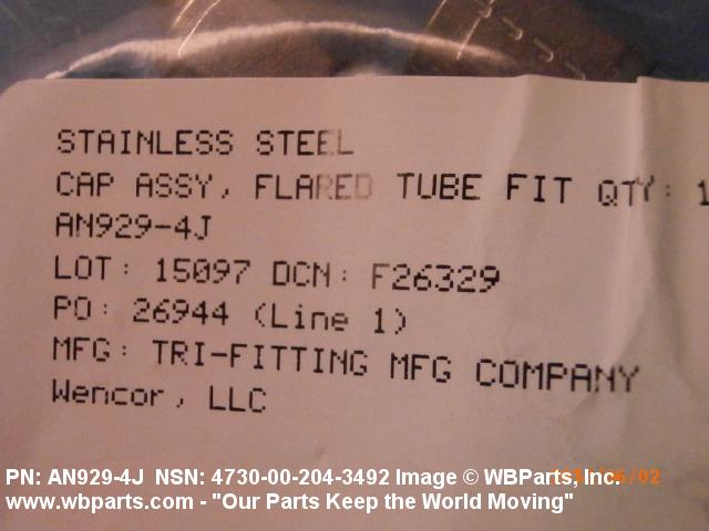 NSN 4730-00-204-3492 AN9294J, AN929-4J, NAS1367DC4C