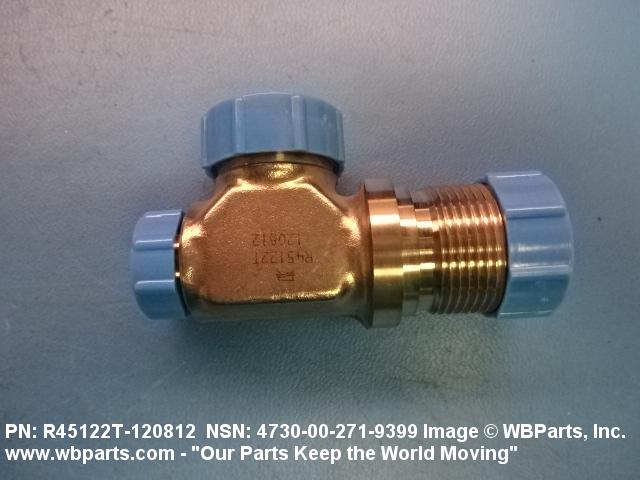 4730-00-271-9399 A fitting having three connections with the branch connection fixed at 90 degrees (1.5705 radians) to the run. The connections have machine threads (straight threads other than pipe or hose series) designed to accommodate a tube, or are unthreaded and designed to accommodate a tube. It may have side inlet(s). It is used as a junction at the intersection of a tube or tube fitting.