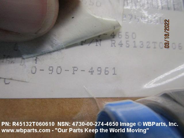 Part Alternates: AE164076610, AE16407-6-6-10, AP379T060610, ST7M233T060610, R45132T060610, 4730-00-274-4650, 00-274-4650, 4730002744650, 002744650