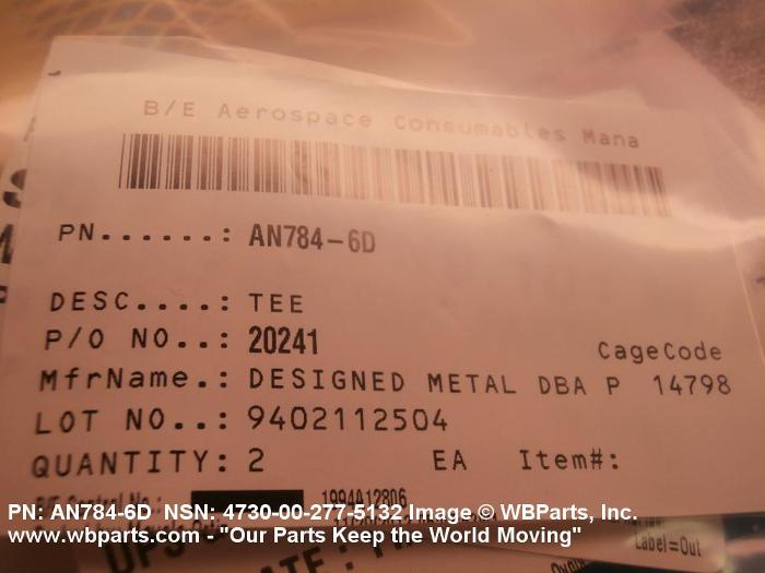 | AN784D6 | 00624 | EATON CORPORATION DBA AEROSPACE DIV |