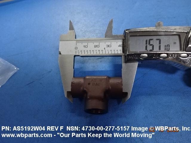 4730-00-277-5157 A fitting having three connections with the branch connection fixed at 90 degrees (1.5705 radians) to the run. The connections have external or internal machine threads (straight threads other than pipe or hose series), and are designed to facilitate a gasket, preformed packing, washer, or the like, to form a seal at the boss. It may have side inlet(s). It is used as a junction at the intersection of a boss or boss fitting on items such as tanks, housings, valve fittings, and the like. Excludes TEE, TUBE.