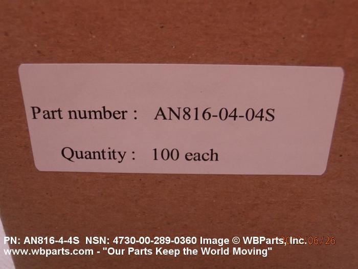 NSN 4730-00-289-0360 AN81644S, AN816-4-4S, AS4842/1