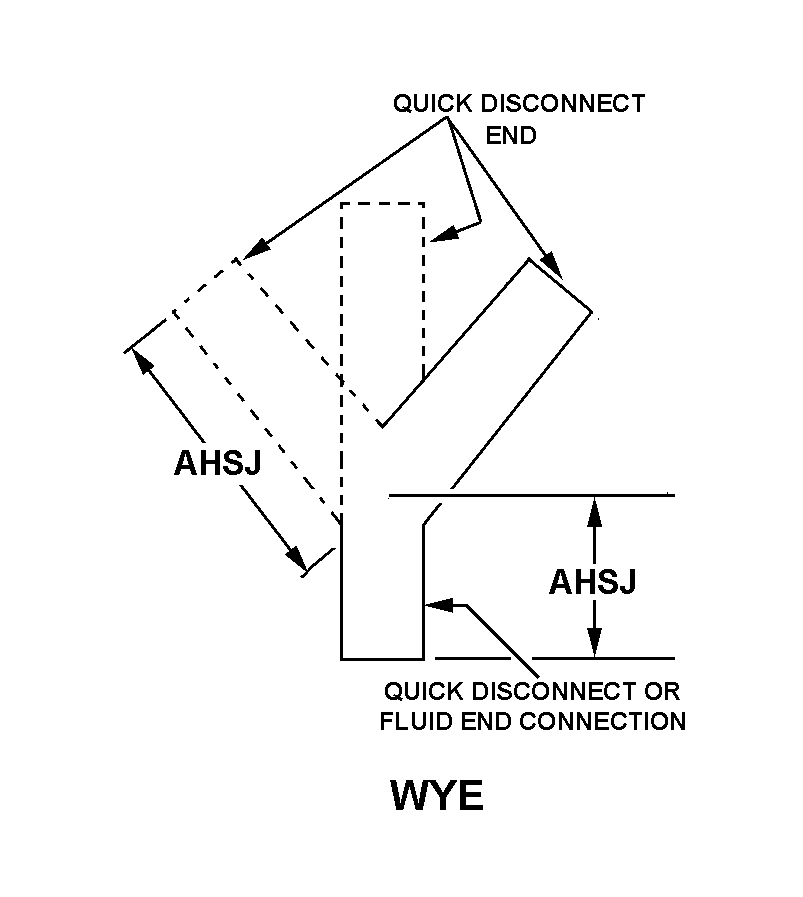 4730-00-322-9636 A fluid line fitting shaped to form the letter "Y" with a quick disconnect feature on the branch ends and having a pipe, tube, hose or quick disconnect feature on the base or inlet end.