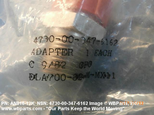 NSN 4730-00-347-6162 AN81612K, AN816-12K, AS4842/1