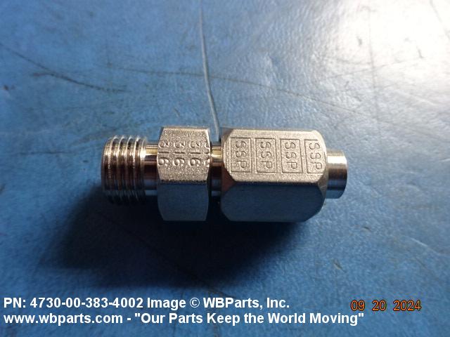 4730-00-383-4002 An adapter having machine threads (straight threads other than pipe or hose series) designed to accommodate a tube on one end or an unthreaded end designed to accommodate a tube. The other end has external or internal machine threads (straight threads other than pipe or hose series) and is designed to facilitate a gasket, preformed packing, washer, or the like to form a seal at the boss. It is designed to join a tube or tube fitting to a boss or boss fitting in a straight line on items such as tanks, housings, valve fittings, and the like. See also COUPLING, TUBE and NIPPLE, TUBE.