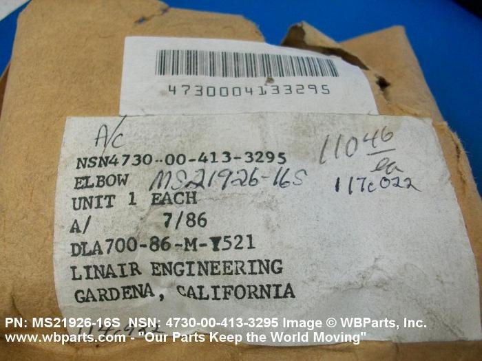 NSN 4730-00-413-3295 MS2192616S, MS21926-16S, MS21926K16
